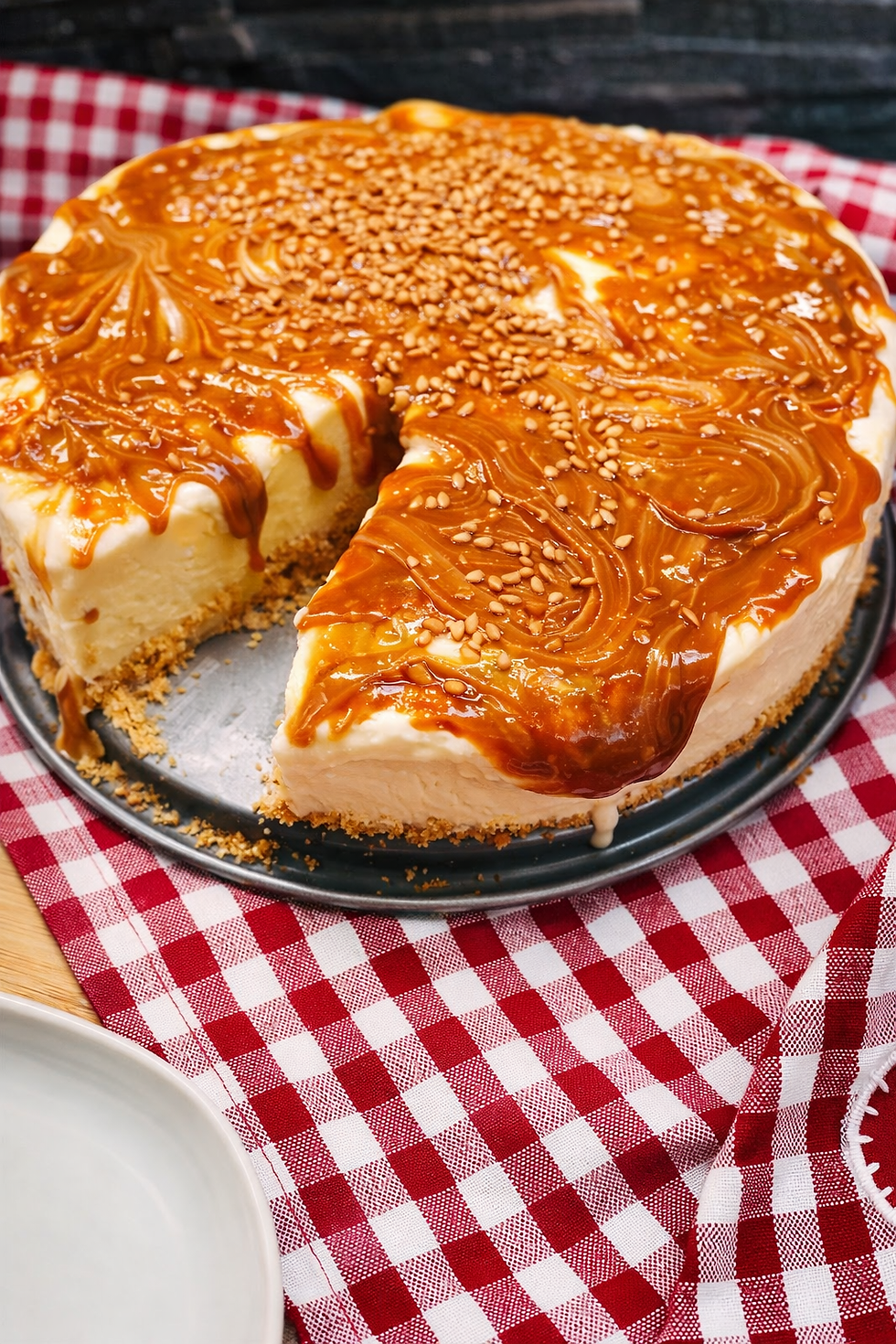Toppa med karamelliserad mjölk och strössel innan servering och vips så har ni en cheesecake med extra allt 💕.