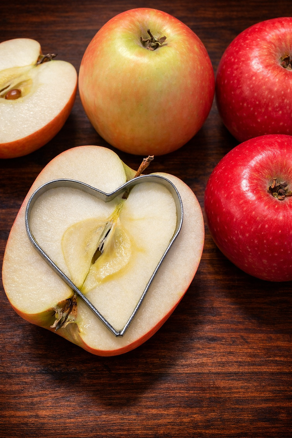 Jag låter formen sitta kvar under tiden jag gröpar ur innehållet i hjärtat. Då minskar risken att äpplet spricker.