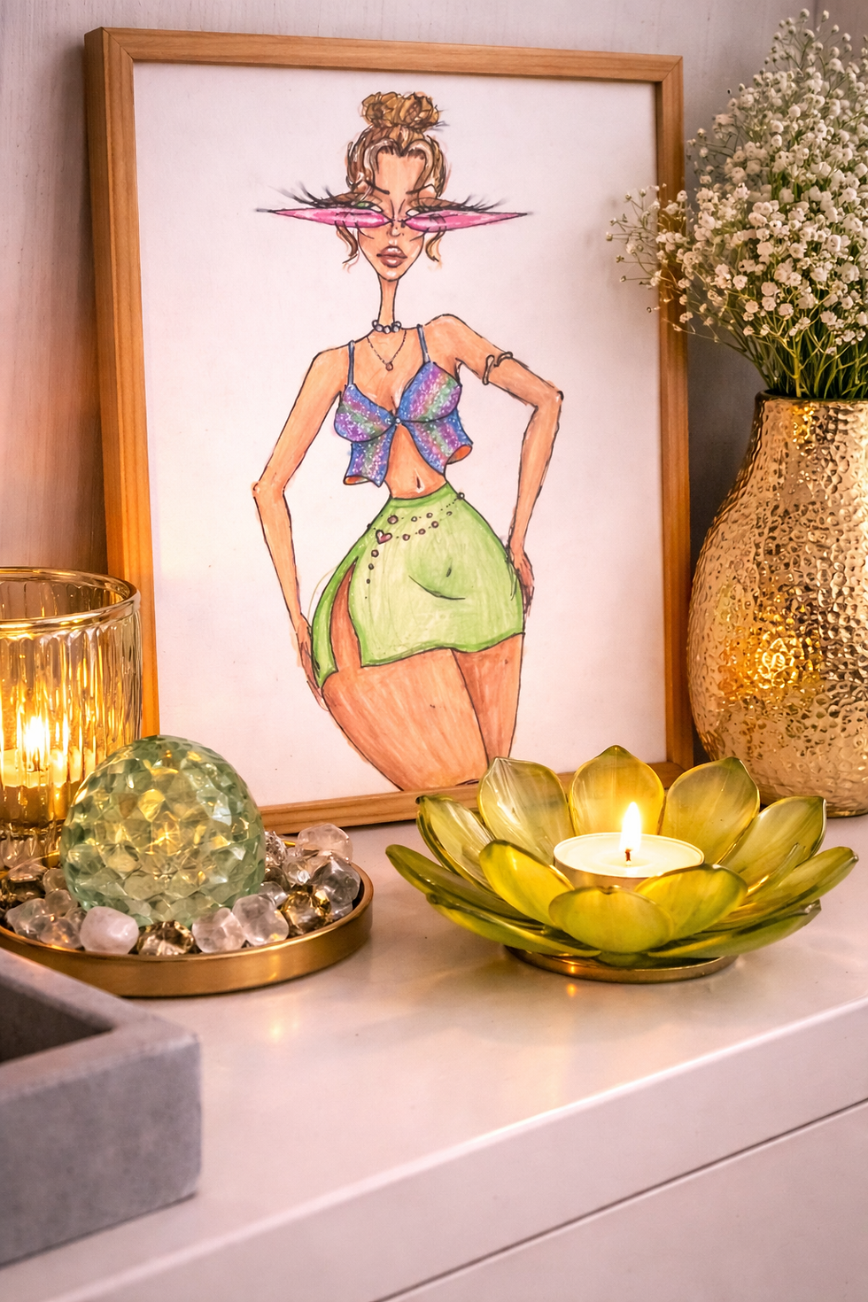 Det är så roligt att följa hennes skapande, från första skissen till färdig tavla. Hon lägger ner mycket tid och hjärta i det hon gör. Ibland kan man se tydligt vart inspirationen kommer från..som här nedanför…när hon under en tid experimenterade med smink och hår…